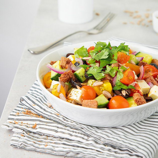 Sommerzeit ist Salatzeit. Und da passt doch ein frischer Brotsalat am besten. Wir bringen das griechische Lebensgefühl mit und fügen dem Salat noch Schafkäse und Oliven hinzu. Ein perfekte Mittagssnack oder zum Ausklang des warmen Sommertages auf dem Balkon genießen. Merkt euch am besten jetzt das Rezept!