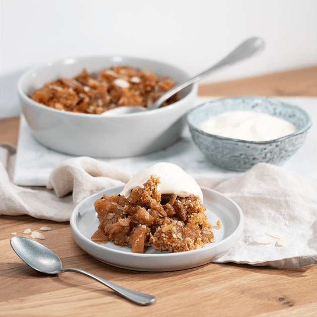 Knusprig warmer Apfel Crumble für trübe Herbsttage