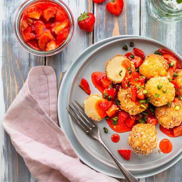 Quarkknödel mit Erdbeer-Rhabarber-Soße
