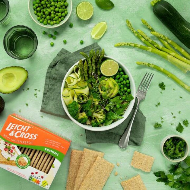 Vegane Green Bowl mit LEICHT&CROSS Roggen
