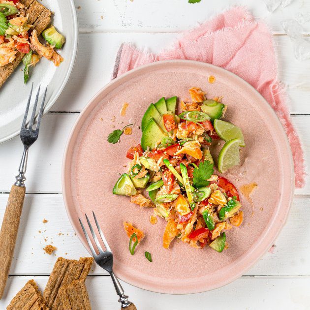 Habt ihr schon einmal Lachsalat gegessen? Wir bereiten heute die hawaiianische Variante mit Tomaten, Avocado, Frühlingszwiebel und Limette zu. Super lecker und perfekt für ein leichtes Sommeressen. Probiert es mal aus! Sommerliche Salat-Rezepte sind genau das richtige für euch? Dann schaut euch auch mal unser Rezept für einen Spinat-Brokkoli-Blaubeer-Salat mit Veggie-Frikadellen an!