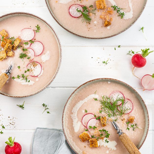 Habt ihr schon einmal Suppe aus Radieschen gekocht? Die rosa Knollen machen sich nicht nur als Snack oder auf dem Brot gut, sondern eben auch in der Suppe. Zusammen mit einem Schluck Weißwein und abgerundet mit etwas Sahne ein rosa Gedicht – probiert es selbst einmal aus! Ihr seid schon im richtigen […]