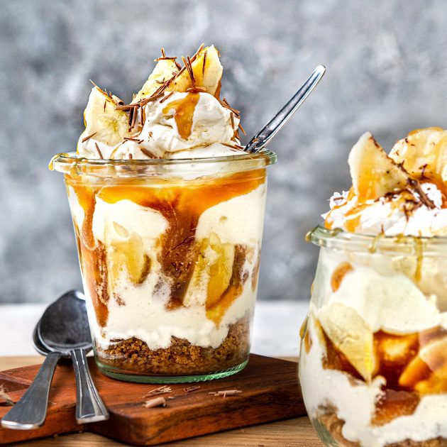 Kennt ihr Banoffee? Wir bereiten das Dessert aus der englischen Küche heute im Glas zu. Unser Knusperbrot gibt dem Ganzen die perfekte Portion Crunch. Probiert ihr es auch aus? Ihr seid Fans von Dessert-Varianten im Glas? Dann solltet ihr auch unbedingt einmal unseren Bienenstich im Glas ausprobieren. So lecker!