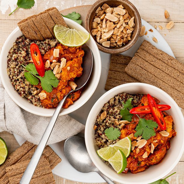 Es ist zurecht eines der beliebtesten Gerichte Großbritanniens – das Chicken Tikka Masala! Wir tauschen Hähnchen gegen Tempeh und zaubern im Nu ein mit gerösteten Erdnüssen, Koriander und frischen Limetten verfeinertes Curry. Unser Knusperbrot darf als Beilage natürlich nicht fehlen! Probiert ihr es aus? Wir bleiben kulinarisch in Großbritannien und bereiten uns ein […]