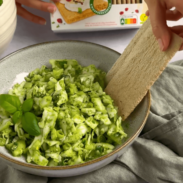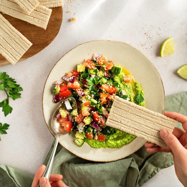 Zum Lunch gibt es bei uns knackig-frischen Tabouleh, eine leckere Erbsencreme und natürlich unser LEICHT&CROSS Knusperbrot. Das beste ist, dass dieses Gericht auch super Meal-Prep geeignet ist und somit auch im Büro oder unterwegs eine gute Figur macht. Probiert das Rezept doch direkt einmal aus!